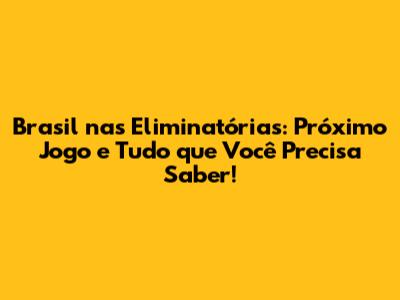 Brasil Nas Eliminatórias: Próximo Jogo E Tudo Que Você Precisa Saber!