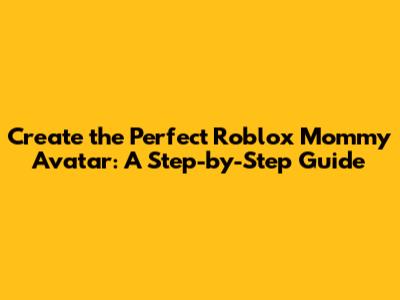 Create The Perfect Roblox Mommy Avatar: A Step-by-Step Guide