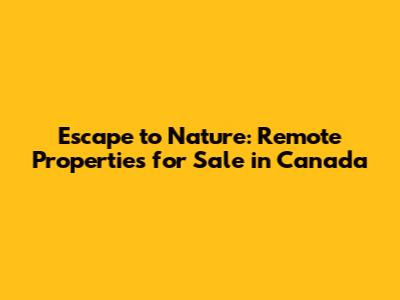 Escape To Nature: Remote Properties For Sale In Canada