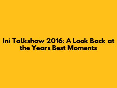 Ini Talkshow 2016: A Look Back At The Year's Best Moments