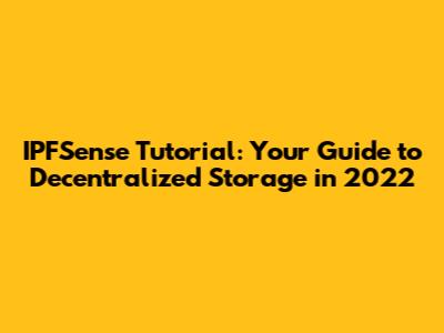 IPFSense Tutorial: Your Guide To Decentralized Storage In 2022
