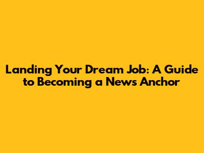 Land Your Dream Job: A Guide To Becoming A News Anchor