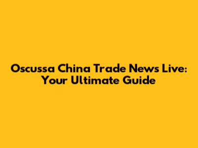 Oscussa China Trade News Live: Updates & Analysis