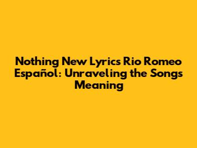 Hey guys! Today, we're diving deep into the enchanting world of Rio Romeo's "Nothing New," especially focusing on the Spanish translation and what it all means. If you've been humming this tune and wondering about the depth behind those heartfelt lyrics, you're in the right place. Let's explore the magic together!