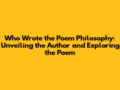 Hey guys, have you ever stumbled upon a poem and thought, "Wow, who cooked this up?" Well, today, we're diving deep into the poem 'Philosophy' to uncover its author and explore what makes it so darn interesting. This isn't just about answering the question of who wrote it; we're also going to take a peek behind the curtain and understand the poem's themes, style, and why it still resonates with us today. Get ready to flex those brain muscles and join me on this literary adventure!